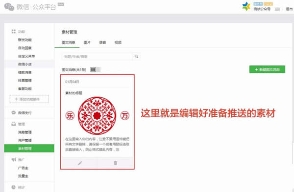 裝機大全致力于收錄最值得您擁有的精品應用,第一時間武裝您的電腦變身電腦達人 我們將為您奉上 更貼心的分類方式:無論您喜歡音樂、視頻, 還是熱衷教程、資訊, 精準的分類方便您在裝機大全中快速找到需要的應用 . 更簡潔的操作界面:富有質感的設計,易于使用的操作方式,無論在何時何地您都可以感受到我們的用心。 很多小伙伴都是微信公眾號的號主,小伙伴的微信公眾號想要在特定的時間發送,該怎么設置定點推送呢?下面大家就跟著小編一起來看看微信公眾號定時發送的方法吧,需要的朋友可以參考下。 1、首先在微信公眾號里編輯好準備要推送的素材;