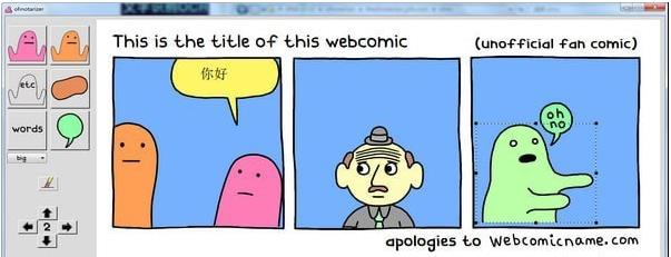 ohnotarizer是一款構圖簡單的自定義漫畫生成器,軟件包含各種人特的圖像,可以自己進行漫畫的創作,資源非常的豐富,人物,氣泡,文字等等,支持快捷鍵操作,非常有趣。